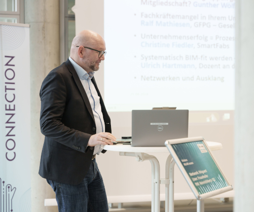 Den Abschluss bildete ein Vortrag von Ulrich Hartmann. Der Dozent an der AGT Akademie sprach über die BIM-Weiterbildung mit öffentlicher Förderung. Dass die Fördermaßnahmen der Bundesregierung auch die Weiterbildung im Bereich BIM umfassen, ist noch wenig bekannt. Die AGT Akademie verfügt über die Möglichkeiten, diese geförderte Weiterbildung anzubieten und durchzuführen.
