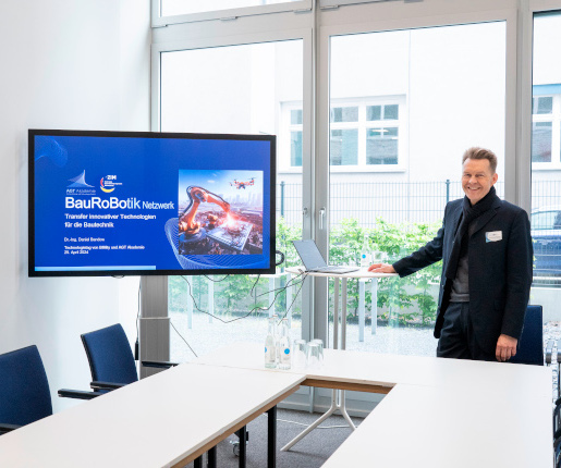 Das ZIM-Netzwerk Baurobotik (BauRoBo) befindet sich in der Vorbereitungsphase. Unter Leitung des Netzwerkmanagers Dr.-Ing. Daniel Bandow diskutierten die Teilnehmer Möglichkeiten und Aufgaben des in Gründung befindlichen Netzwerks.