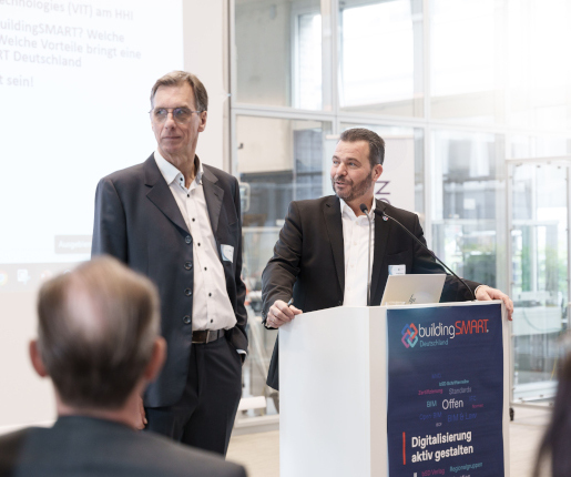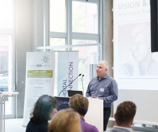 Gastgeber des Regionalgruppentreffens Berlin-Brandenburg war buildingSMART Deutschland. Die Sprecher der buildingSMART-Regionalgruppe Berlin-Brandenburg, Renato Herrmann und Heinz Kölzer, bedankten sich in ihren Eröffnungsreden beim HHI für die intensive Unterstützung des Technologietags und übergaben das Mikrofon an Prof. Dr.-Ing. Peter Eisert. Der Abteilungsleiter Vision and Imaging Technologies (VIT) am HHI fungierte als Hausher und stellte das Heinrich-Hertz-Institut und die Abteilung VIT vor.