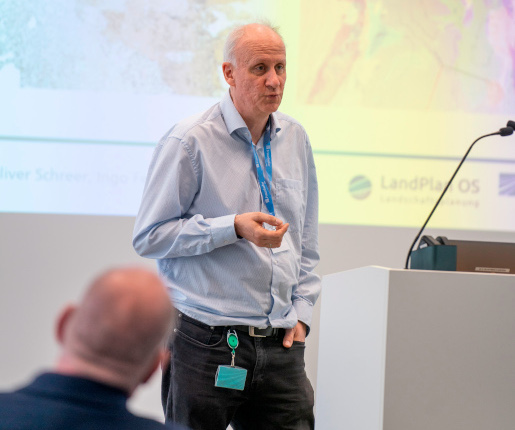 Nach der Begrüßung durch den Netzwerkmanager Heinz Kölzer sprach Stefan W. Kauling (LandPlan OS GmbH) lebhaft und kurzweilig zum Thema „Die verteilte Baubesprechung. In (Nah-)Echtzeit von der Realität in die virtuelle Realität und wieder zurück.“ Dabei stellte er das Projekt BIMPass vor, das eine Parallelisierung und Synchronisierung von Darstellung (XR) und Datenerhebung (3D-Scan) bei Vorortterminen ermöglicht.