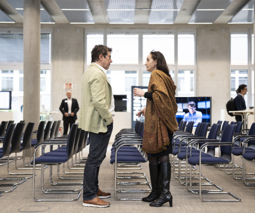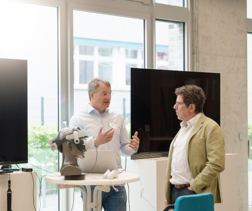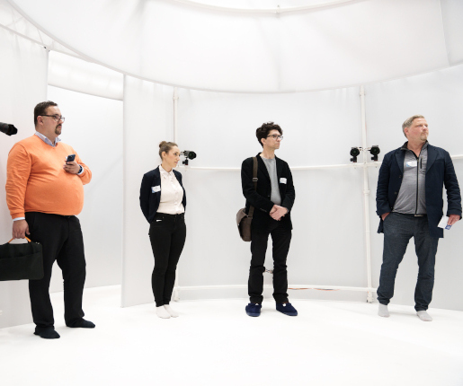 Mitarbeiter des HHI organisierten Rundgänge durch das TiME Lab und Volumetric Video Studio. Aufgrund der beengten Platzverhältnisse in den Laboren musste die Zahl der Teilnehmer beschränkt werden. Um dennoch möglichst vielen Interessenten den Laborbesuch zu ermöglichen, bot das HHI drei Rundgänge je Labor an – sie waren sehr schnell ausgebucht.